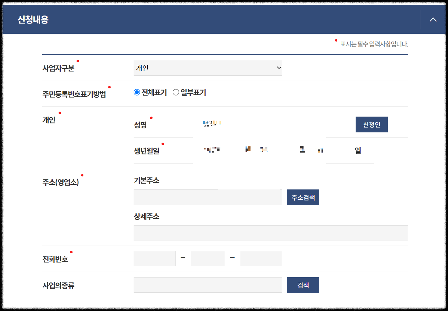 (개인사업자일 경우 개인, 법인사업자일 경우 법인등록번호, 사업자등록번호를 확인합니다,)