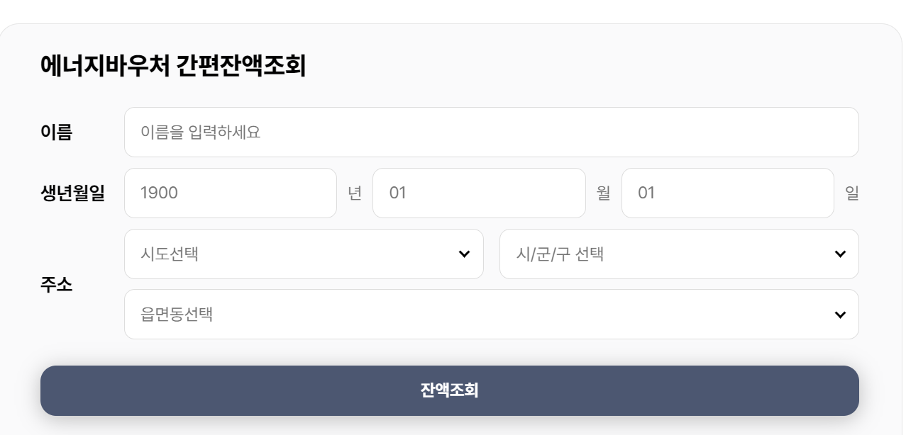 에너지 바우처 잔액조회는 바우처 사용기간인 24년 7월 1일 ~ 25년 5월 25일가지 조회 가능합니다.