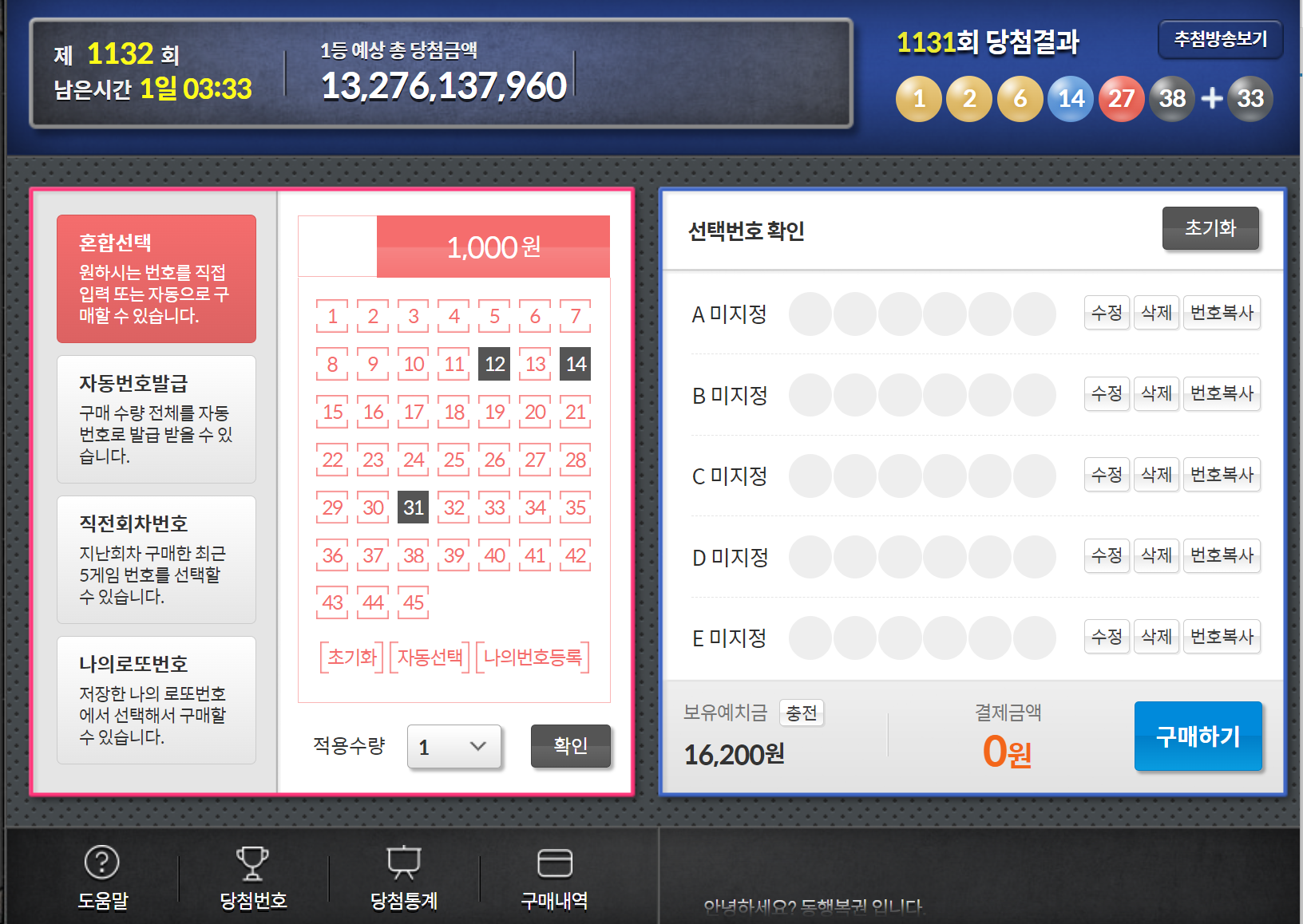 자동, 반자동, 수동으로 선택해 구입할 수 있는데요. 로또 구매 마감시간은 토요일 오후 8시, 온라인 로또도 8시에 마감됩니다.