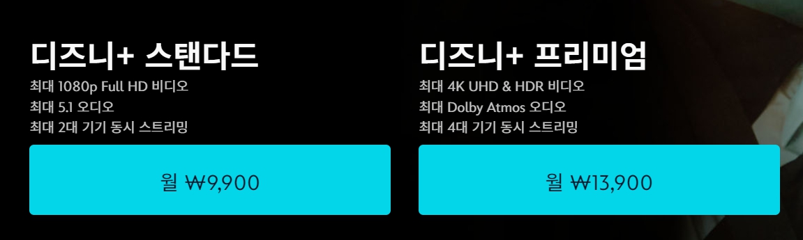 디즈니 플러스 멤버십 요금제의 대해 알아보면 프리미엄과 스탠다드 멤버십이 있습니다.