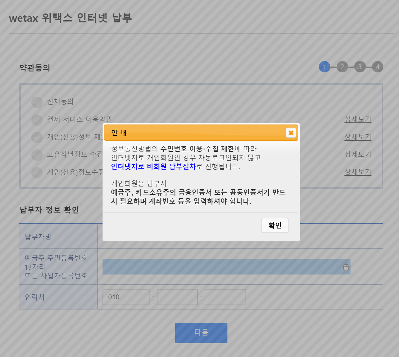 주민세를 납부하기 위해서는 납부자의 공인인증서, 타인납부시 타인의 공인인증서도 필요합니다.