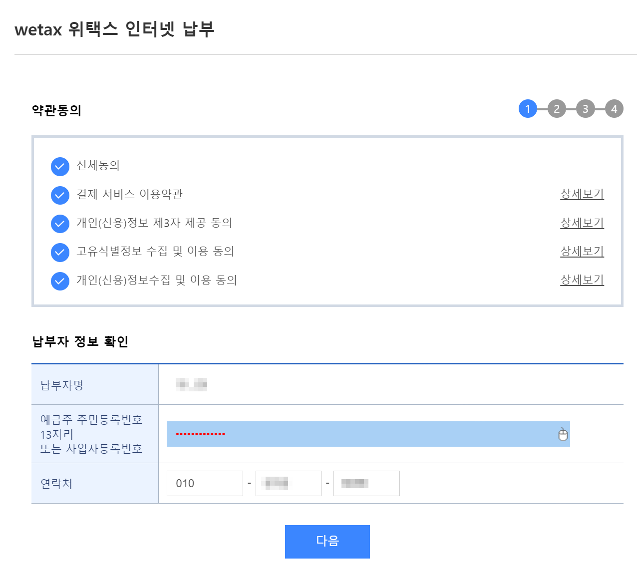 5. 납세고지서를 확인해 볼 수 있습니다. 다음으로 넘어가면