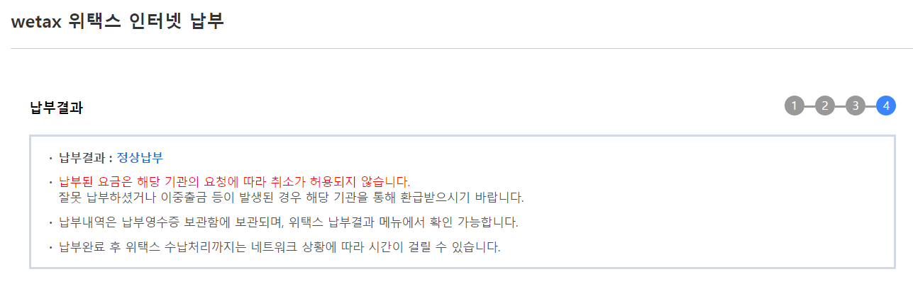 16. 위텍스에 지방세가 정상적으로 납부가 되면 '정상납부'라는 안내문구를 볼 수 있습니다.