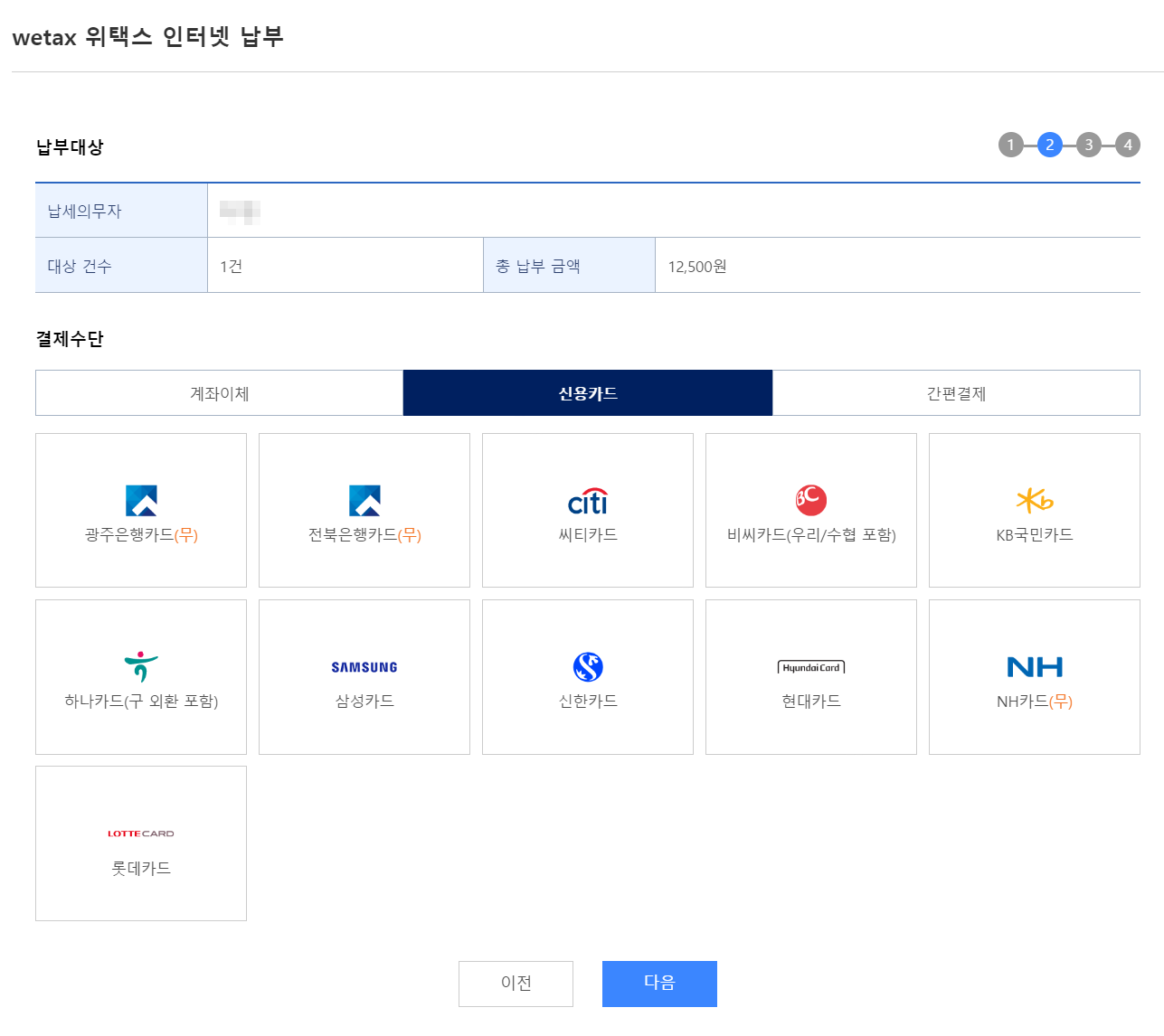 11. 이제 타인 카드 납부 방법을 선택하면 되는데요.
