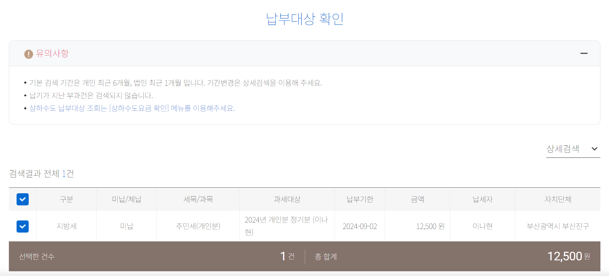 4. 납부 대상 확인에서 지방세 주민세를 선택해 들어가면