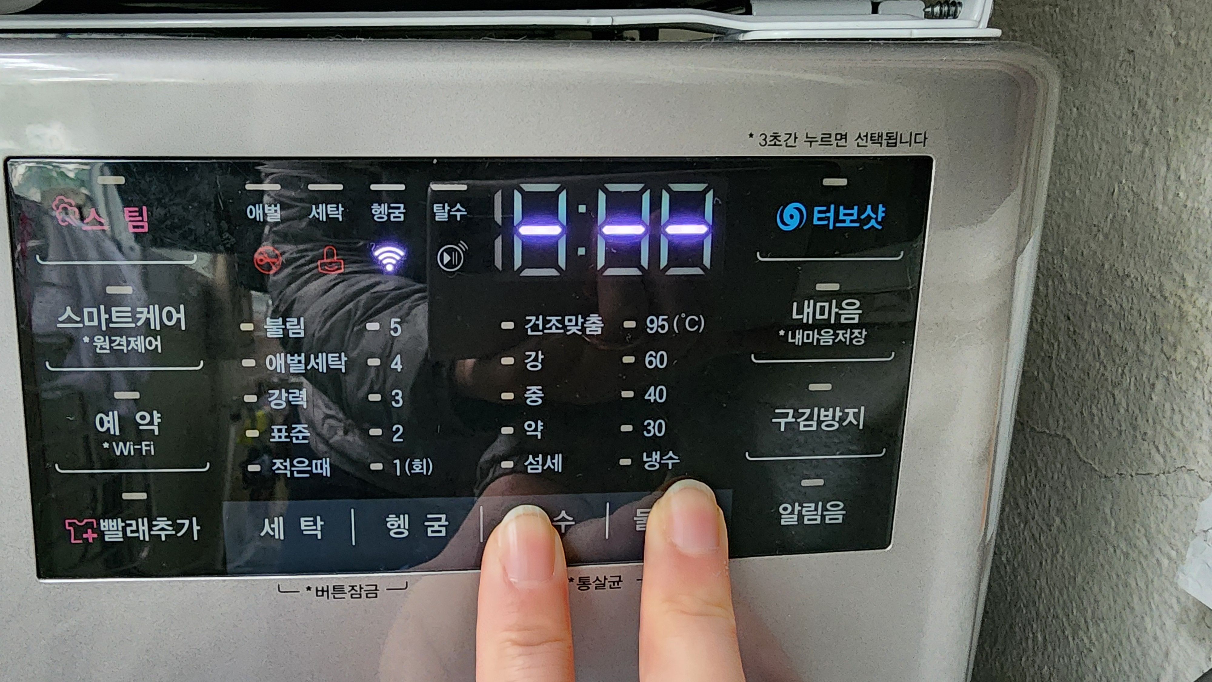 2. 탈수 + 물온도 버튼을 동시에 꾹 누르고