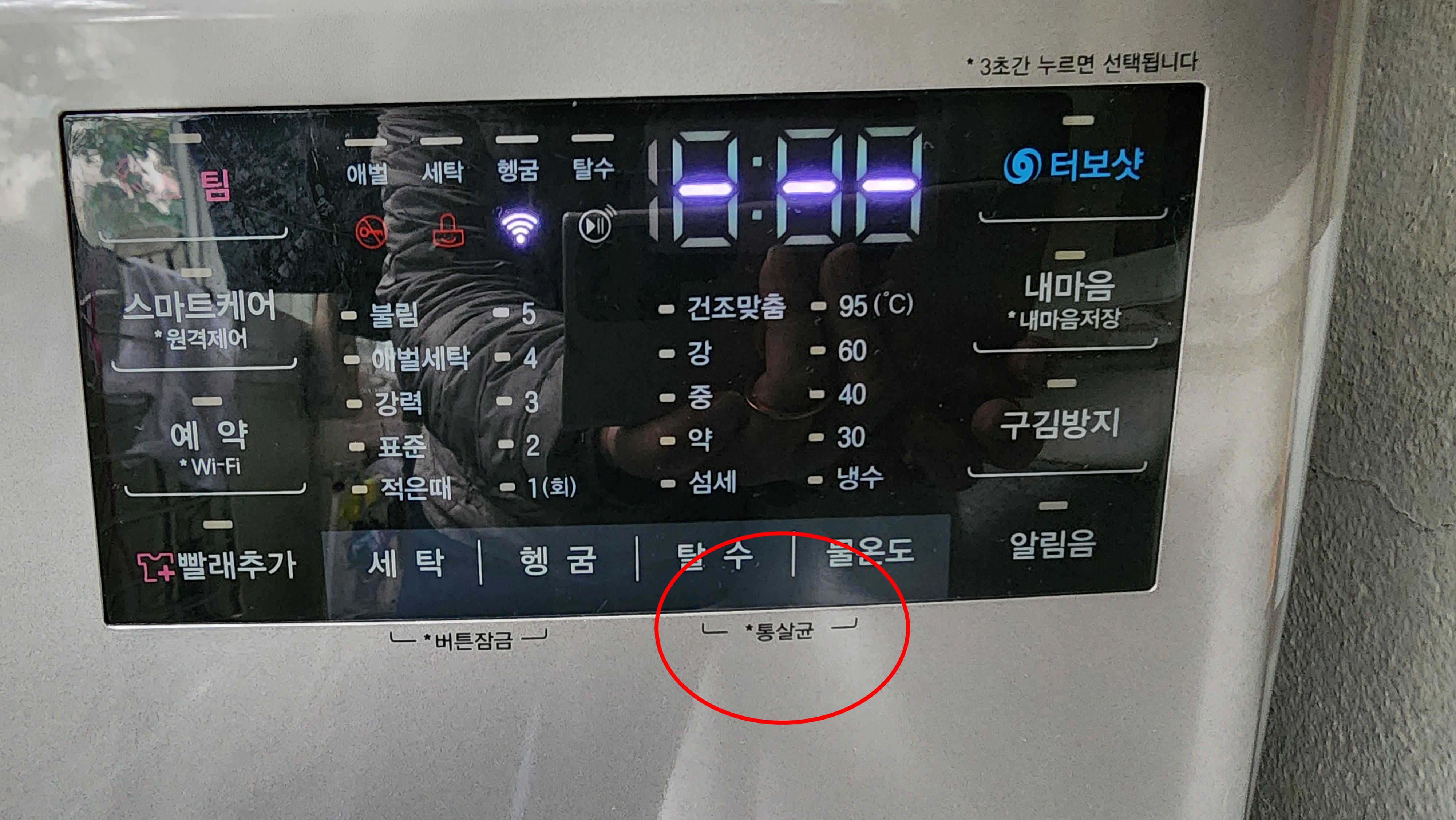 1. 엘지 드럼 세탁기의 경우 통살균 버튼이 있습니다.
