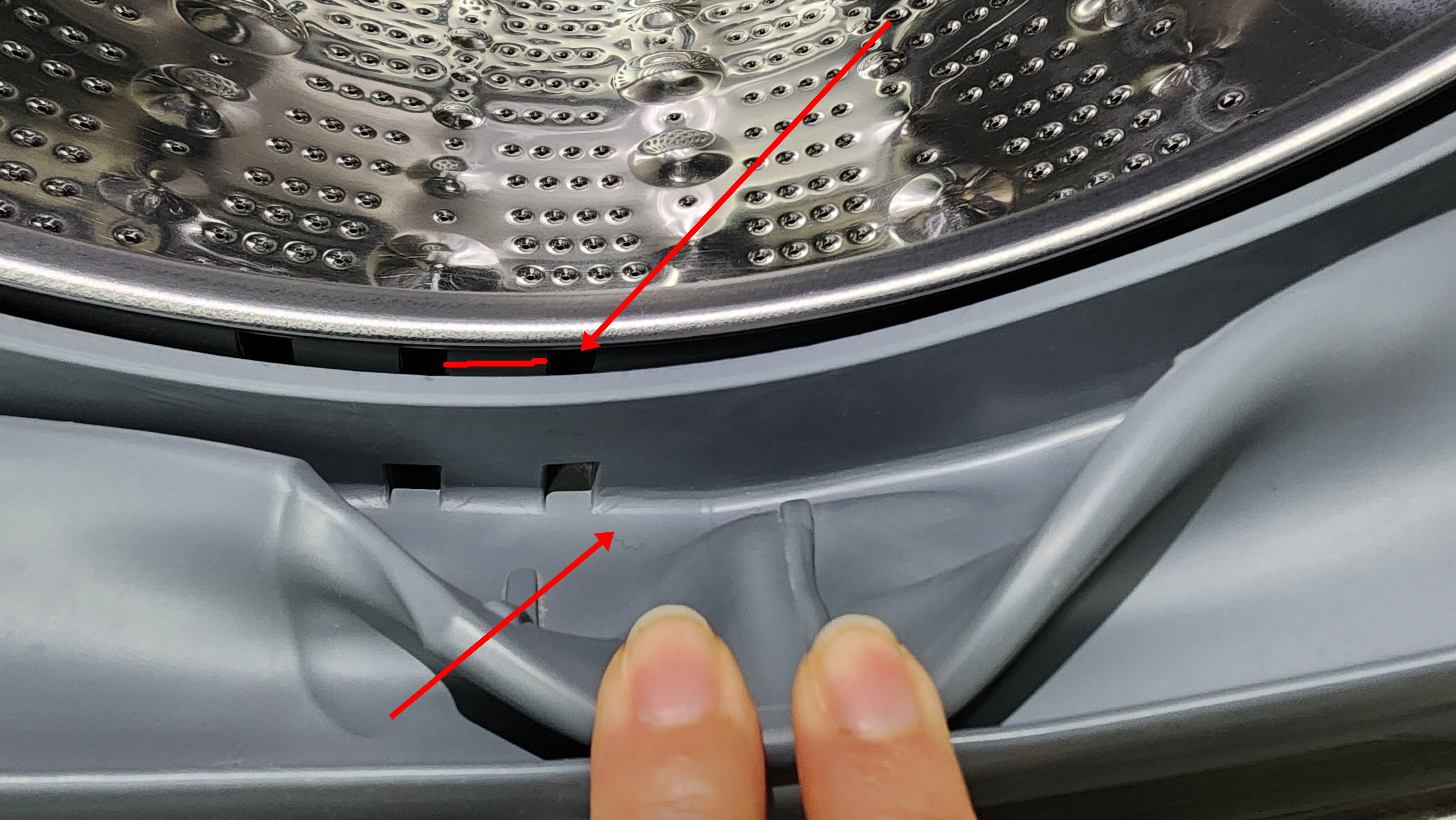 2. 고무패킹과 드럼통 사이에 수건을 끼워 세탁기 드럼통을 뱅글뱅글 돌려주면 드럼통에 끼어있는 때를 제거할 수 있습니다.